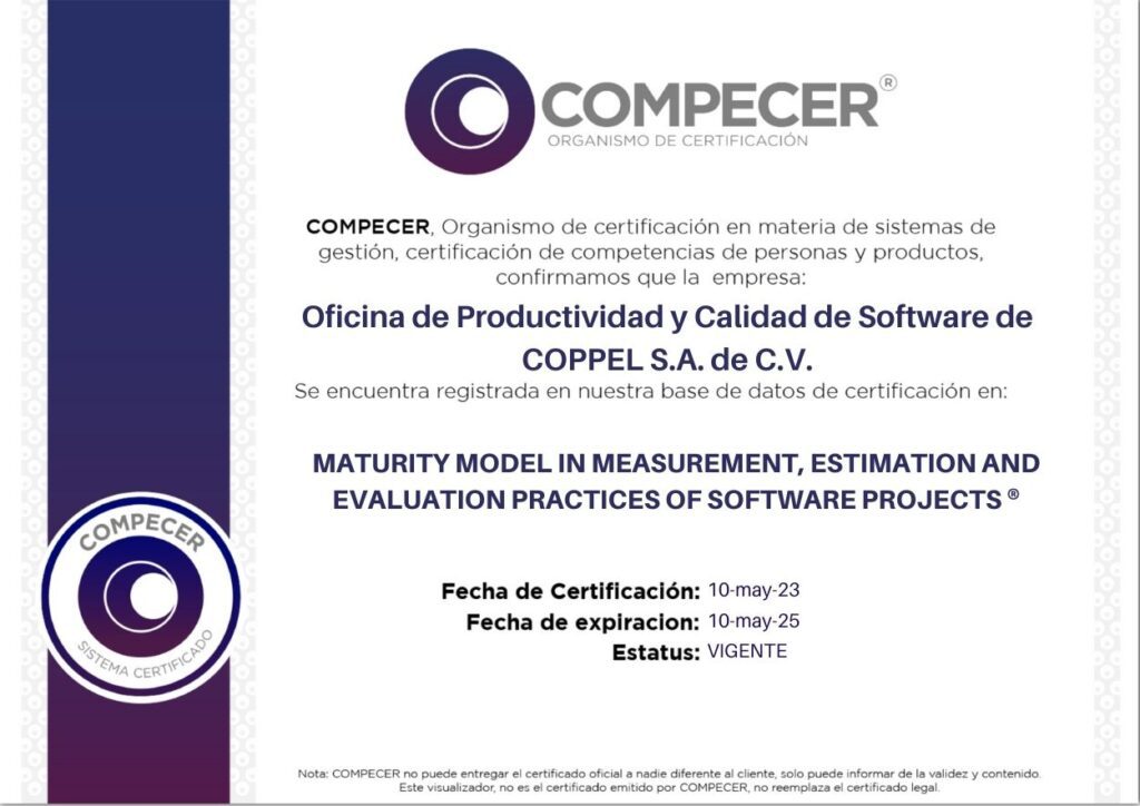 OFICINA DE PRODUCTIVIDAD Y CALIDAD DE SOFTWARE DE COPPEL S.A. DE C.V.