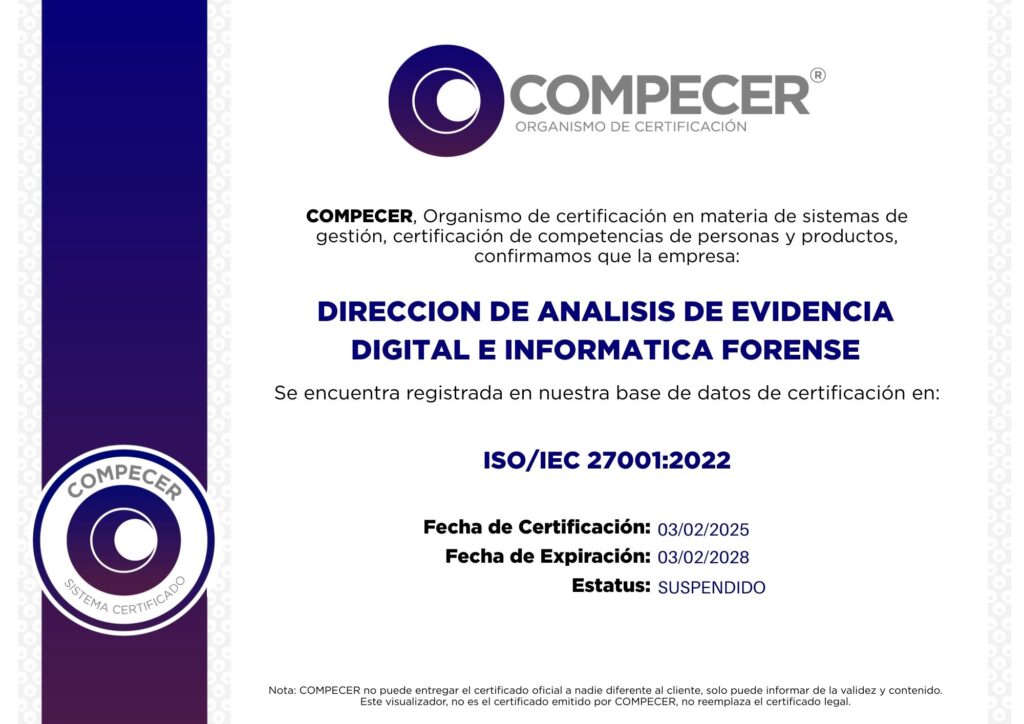 DIRECCION DE ANALISIS DE EVIDENCIA DIGITAL E INFORMATICA FORENSE