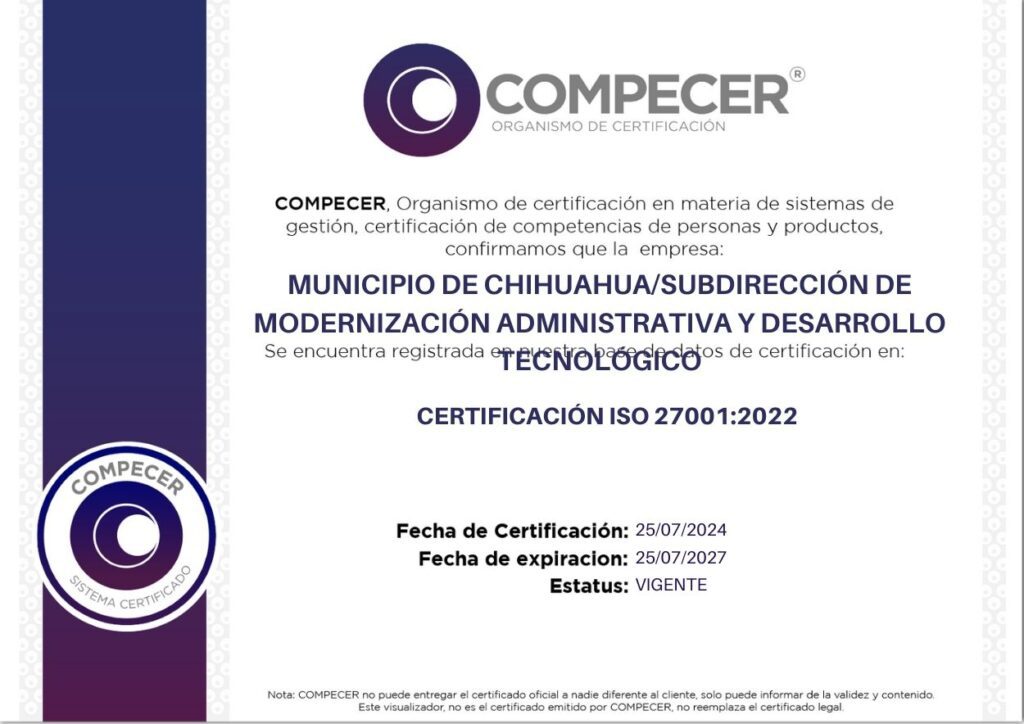 MUNICIPIO DE CHIHUAHUA/SUBDIRECCIÓN DE MODERNIZACIÓN ADMINISTRATIVA Y DESARROLLO TECNOLÓGICO
