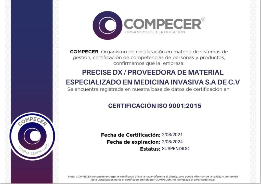 PRECISE DX / PROVEEDORA DE MATERIAL ESPECIALIZADO EN MEDICINA INVASIVA S.A DE C.V