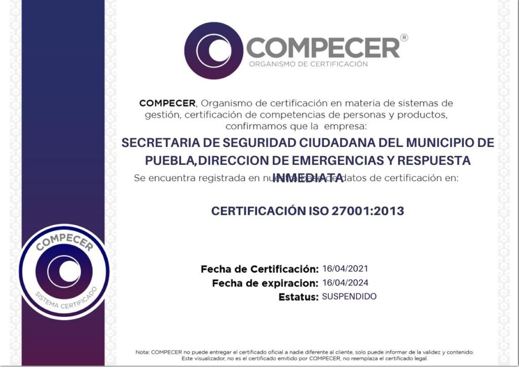 SECRETARIA DE SEGURIDAD CIUDADANA DEL MUNICIPIO DE PUEBLA,DIRECCION DE EMERGENCIAS Y RESPUESTA INMEDIATA
