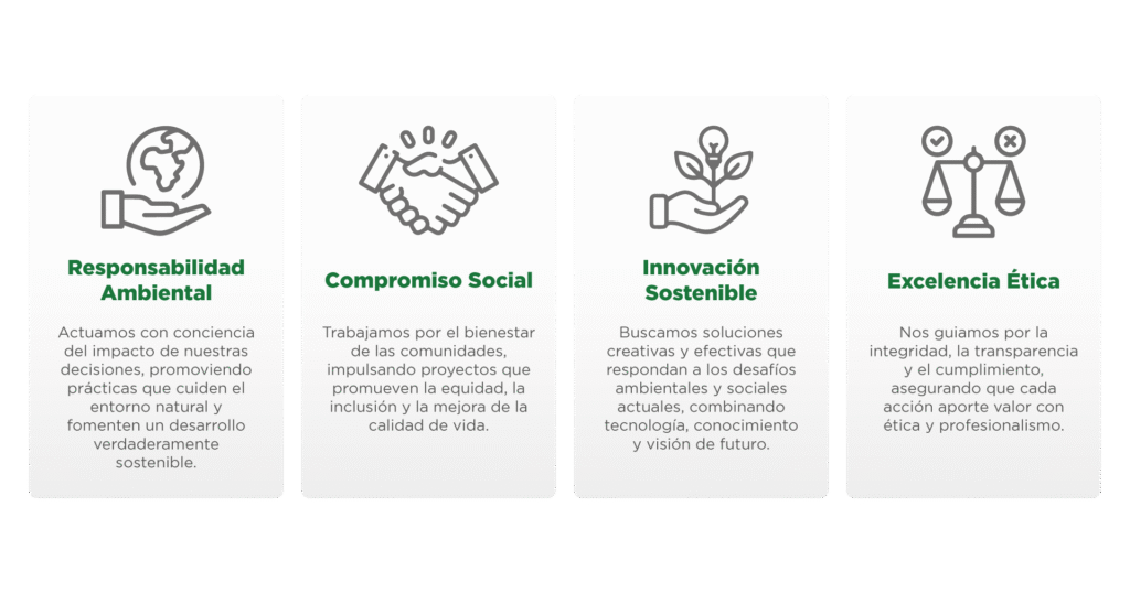 En nuestra división de Sostenibilidad, todo lo que hacemos está guiado por cuatro valores esenciales que definen nuestra forma de pensar y actuar.